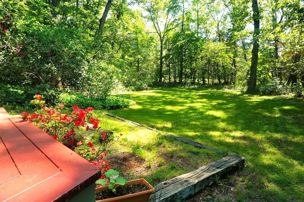 Desirable Happy Hollow neighborhood, short distance to all schools (elementary, WMS & WHS), abutting Aqueduct conservation area with direct access to the Dudley Pond. Private setting away from street. Light and nature are pouring into this unique contemporary home. Spacious front foyer with a large walk-in mudroom closet. Living & dining room & kitchen are very bright, each one with multiple sliders opening to an over-sized deck overlooking massive private back yard. Remodeled kitchen has cherry wood cabinets, granite counters, SS appliances & sliders opening to the deck. First floor primary suite has cathedral ceilings, skylight, multiple sliders overlooking conservation & walk-in closet. Second floor features 3 good-sized bedrooms & recently remodeled full bathroom. Hardwood floors throughout. Partially finished basement features laundry room, family room/ playroom, direct access to a compact size garage. Great commuting location.